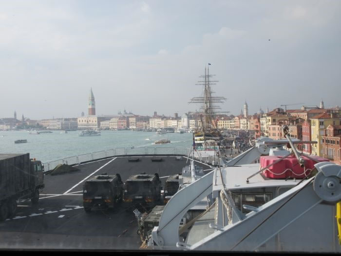 Vespucci e San Giorgio a Venezia/ Il Vespucci visto dal ponte di comando del San Giorgio