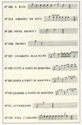 Il fischietto viene usato sia per impartire ordini per le manovre, sia per rendere gli onori al Comandante e agli Ufficiali, ed ospiti importanti, che salgono a bordo o che scendono dalla nave (il 6 alla banda, il 4 alla banda).