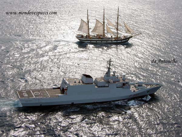 La nave scuola Palinuro./ Palinuro e Comandante Borsini in navigazione.