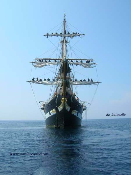 La nave scuola Palinuro./ Serrare le vele.