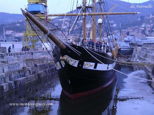 La nave scuola Palinuro./ ai lavori in uno dei bacini di carenaggio.
