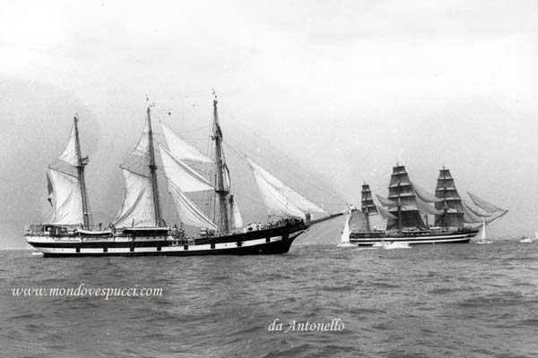 La nave scuola Palinuro./ in navigazione con la nave scuola Amerigo Vespucci.