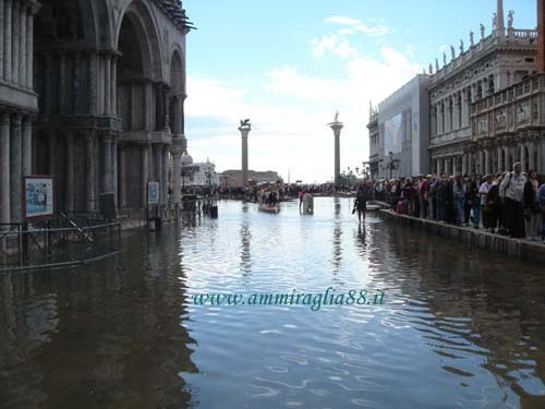 Venezia e la nave scuola Palinuro./ acqua alta in Piazza San Marco e passerella ... con ingorgo pedonale.