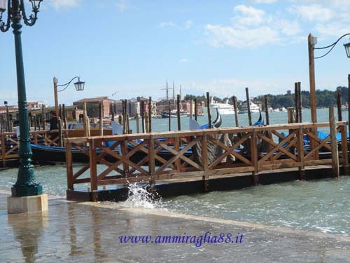 Venezia e la nave scuola Palinuro./ residui di acqua alta ed in lontananza il veliero.