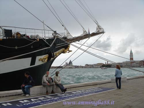 Venezia e la nave scuola Palinuro./ il bompresso ed in lontananza piazza San Marco.
