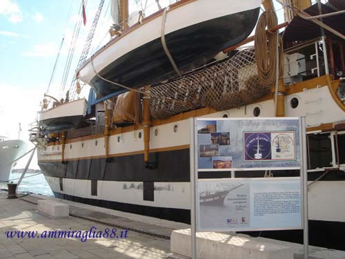 Venezia e la nave scuola Palinuro./ verso poppa ed uno dei manifesti della mostra.